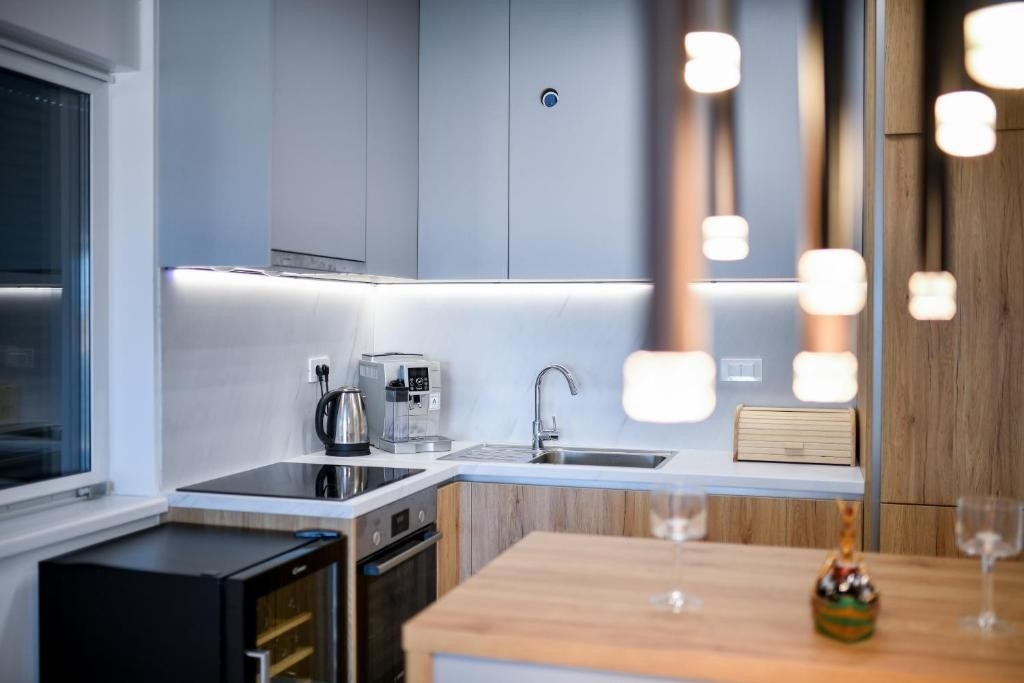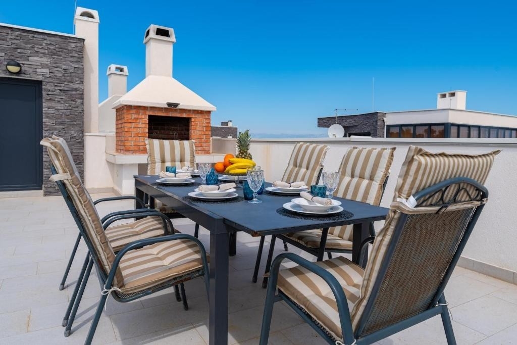 Apartment can accommodate 5 guests. Beds are situated in 2 sleeping rooms, but also in the living room, within 51m2. Guests can use a private terrace to enjoy the warm summer evenings. The apartment offers the sea view. For full enjoyment and relaxation there is a private barbecue for this accommodation guests only. Not all the rooms of the booked accommodation unit are connected into one whole.