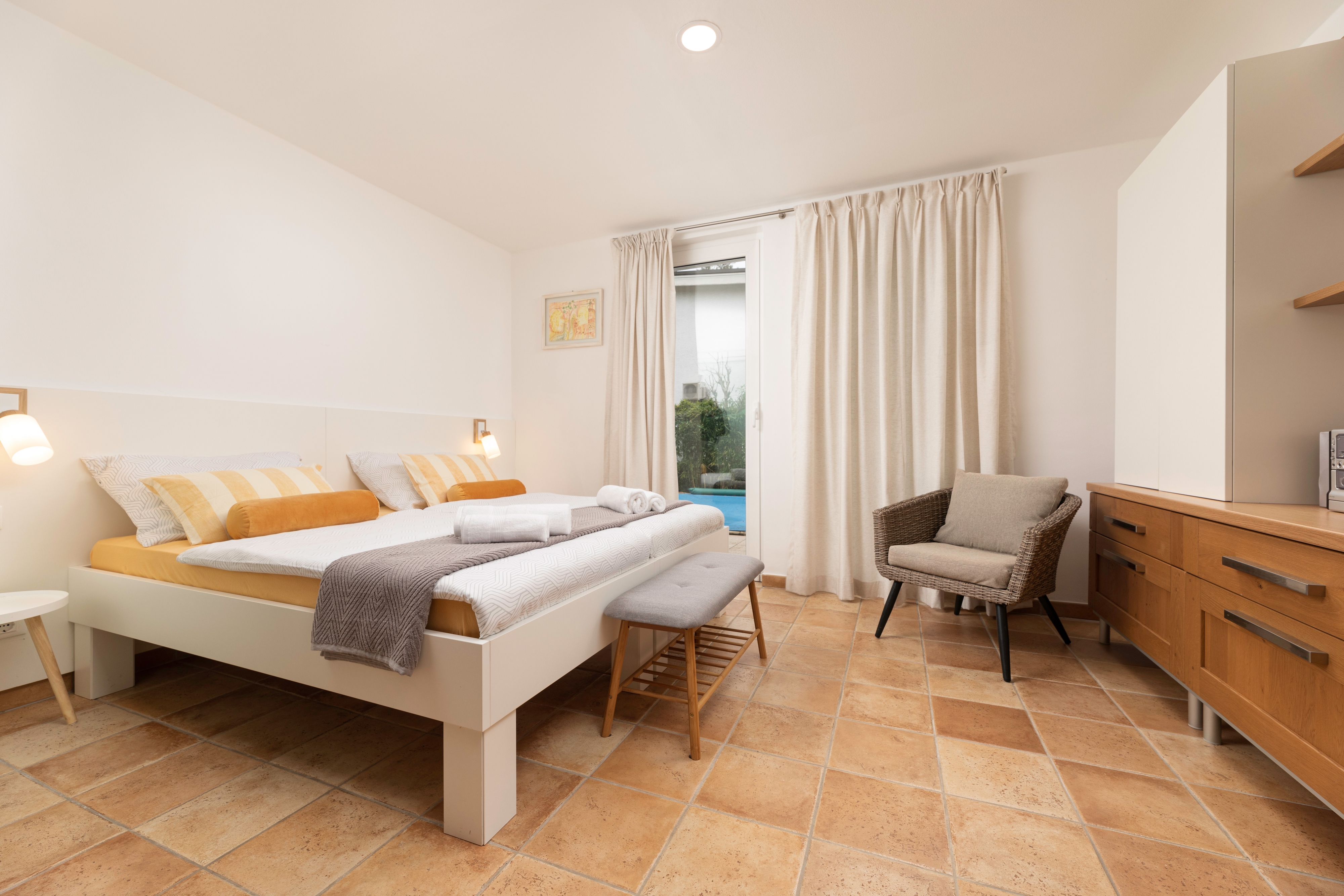 Apartment can accommodate 4 guests. Beds are situated in 2 sleeping rooms, within 66m2. Guests can use a private terrace to enjoy the warm summer evenings. During stay, there is a private pool for relaxation and pleasure.