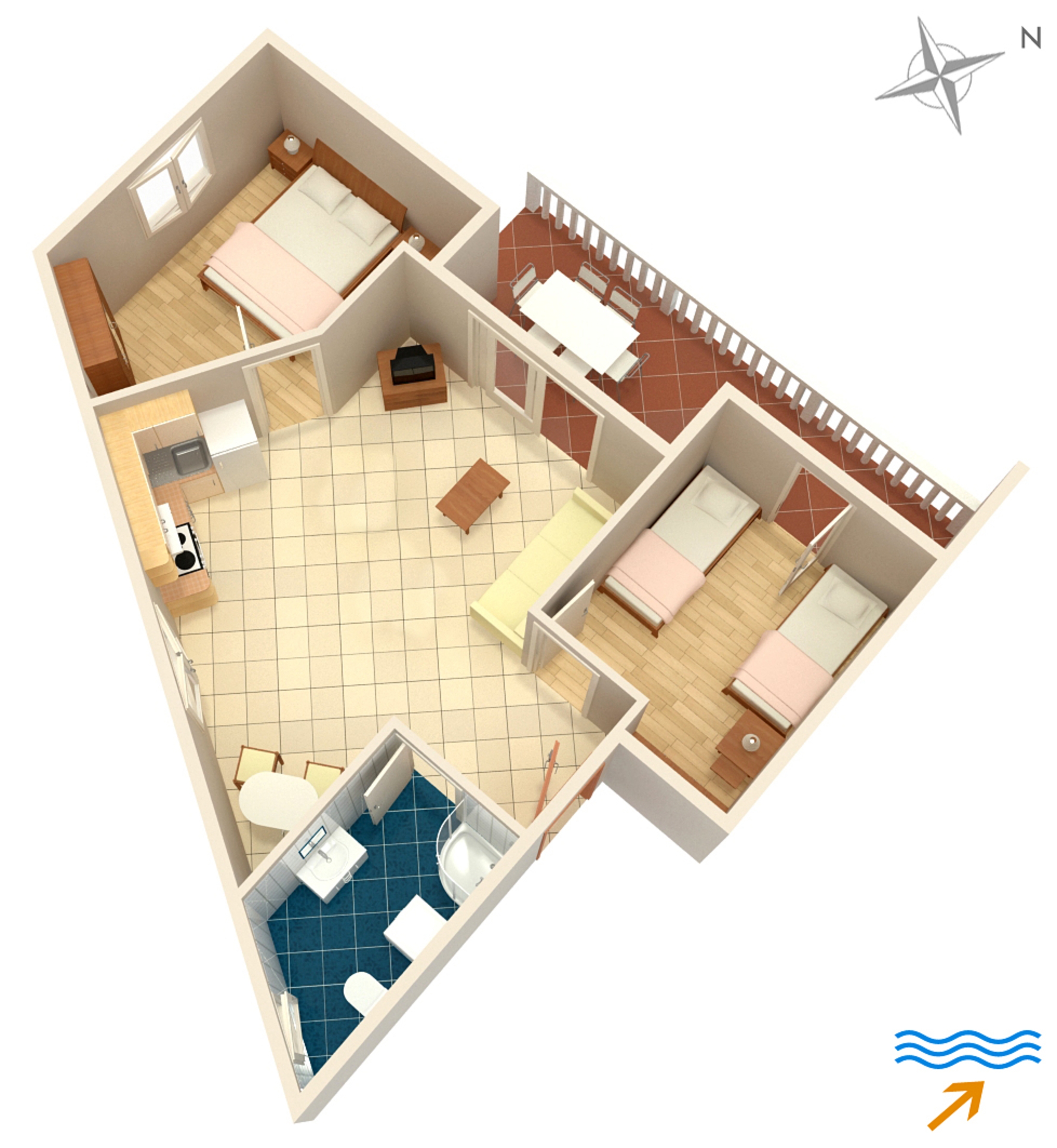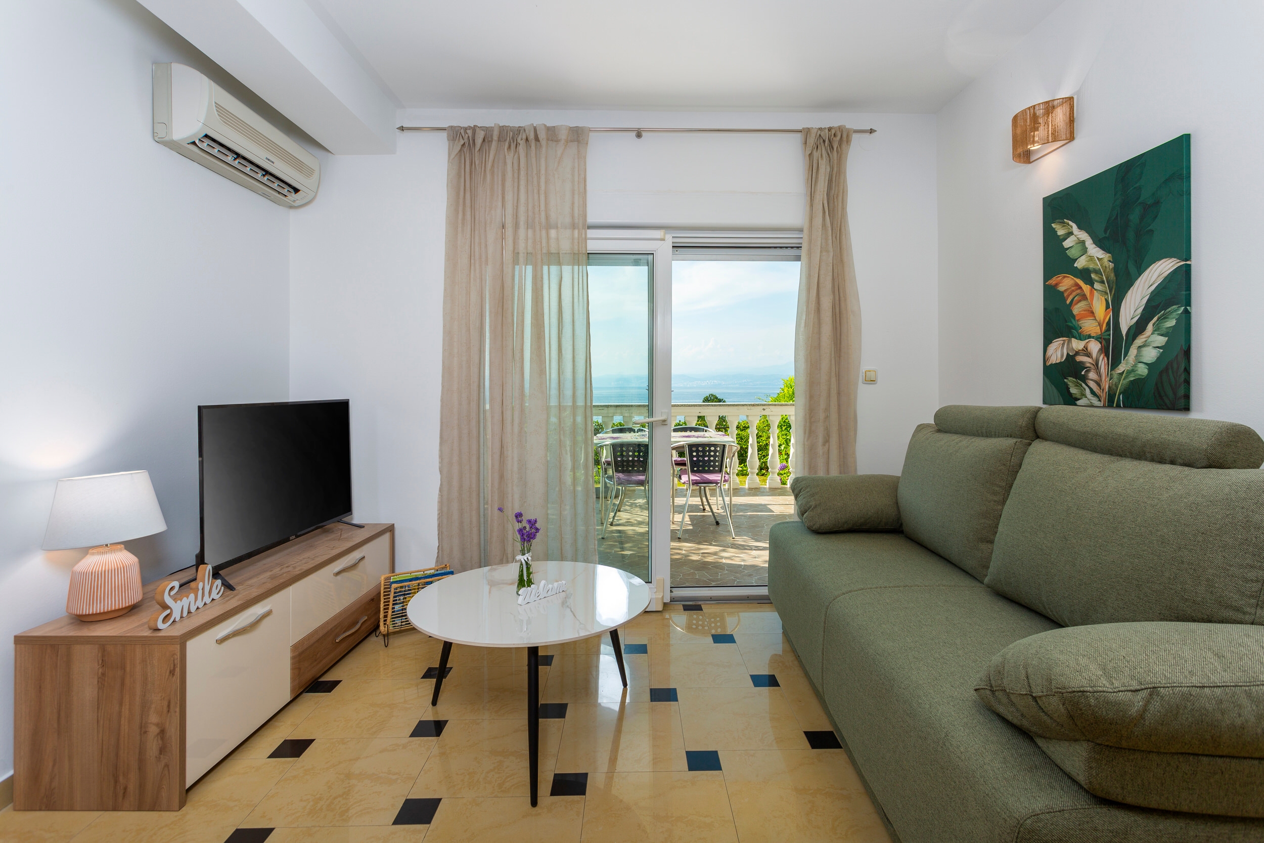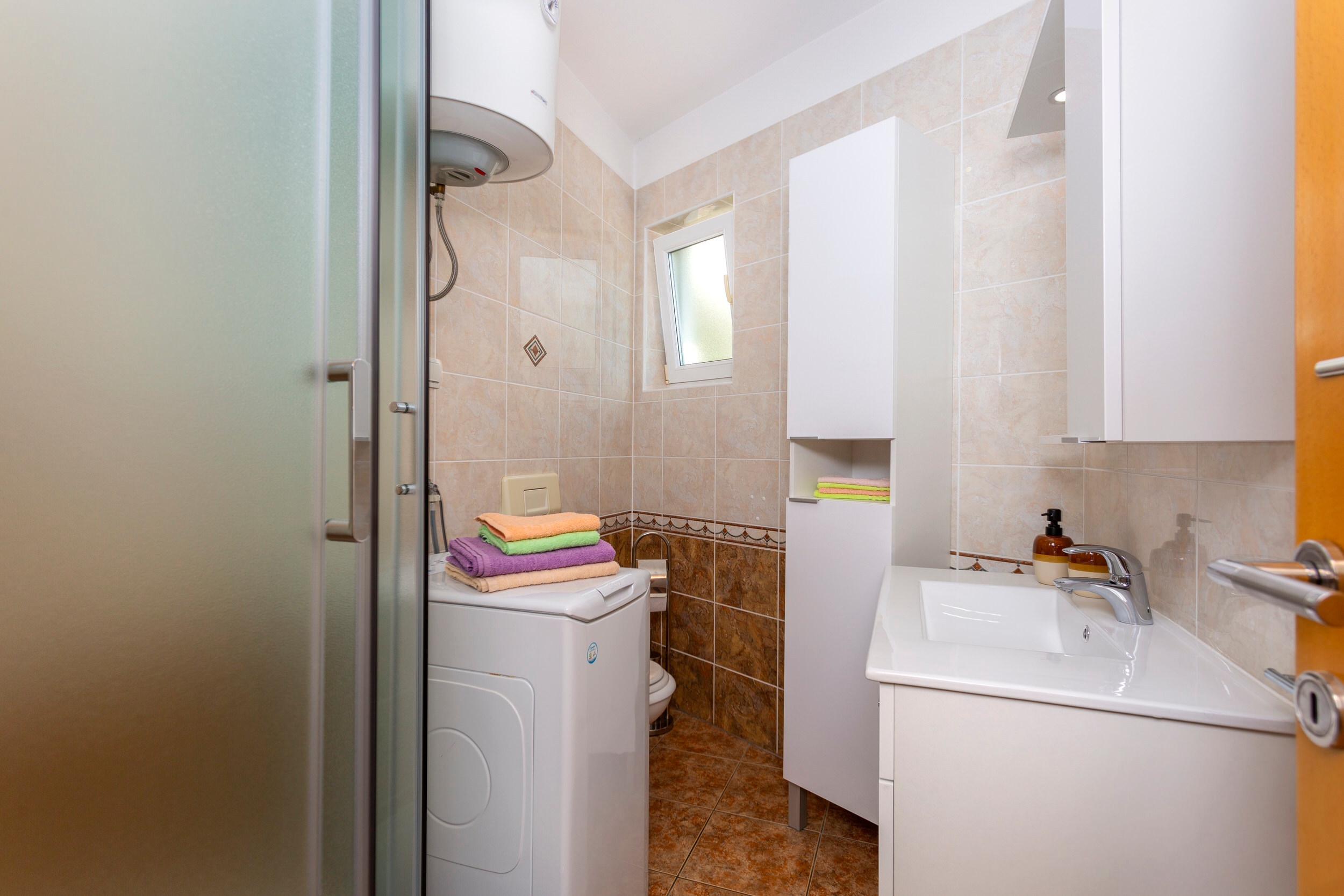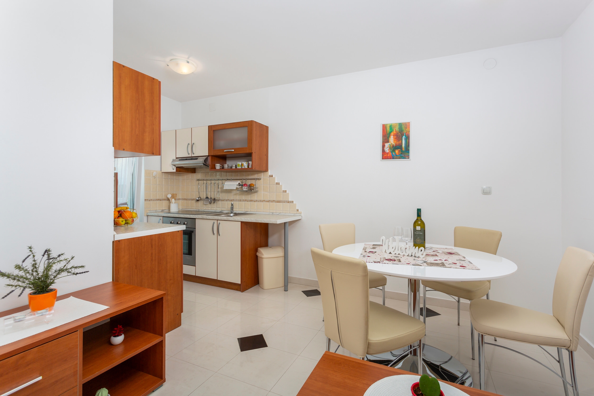 Apartment can accommodate 4 guests. Beds are situated in 2 sleeping rooms, but also in the living room, within 39m2. Guests can use a private terrace to enjoy the warm summer evenings. The apartment offers the sea view. Food can be prepared using barbecue which is shared with other guests too.