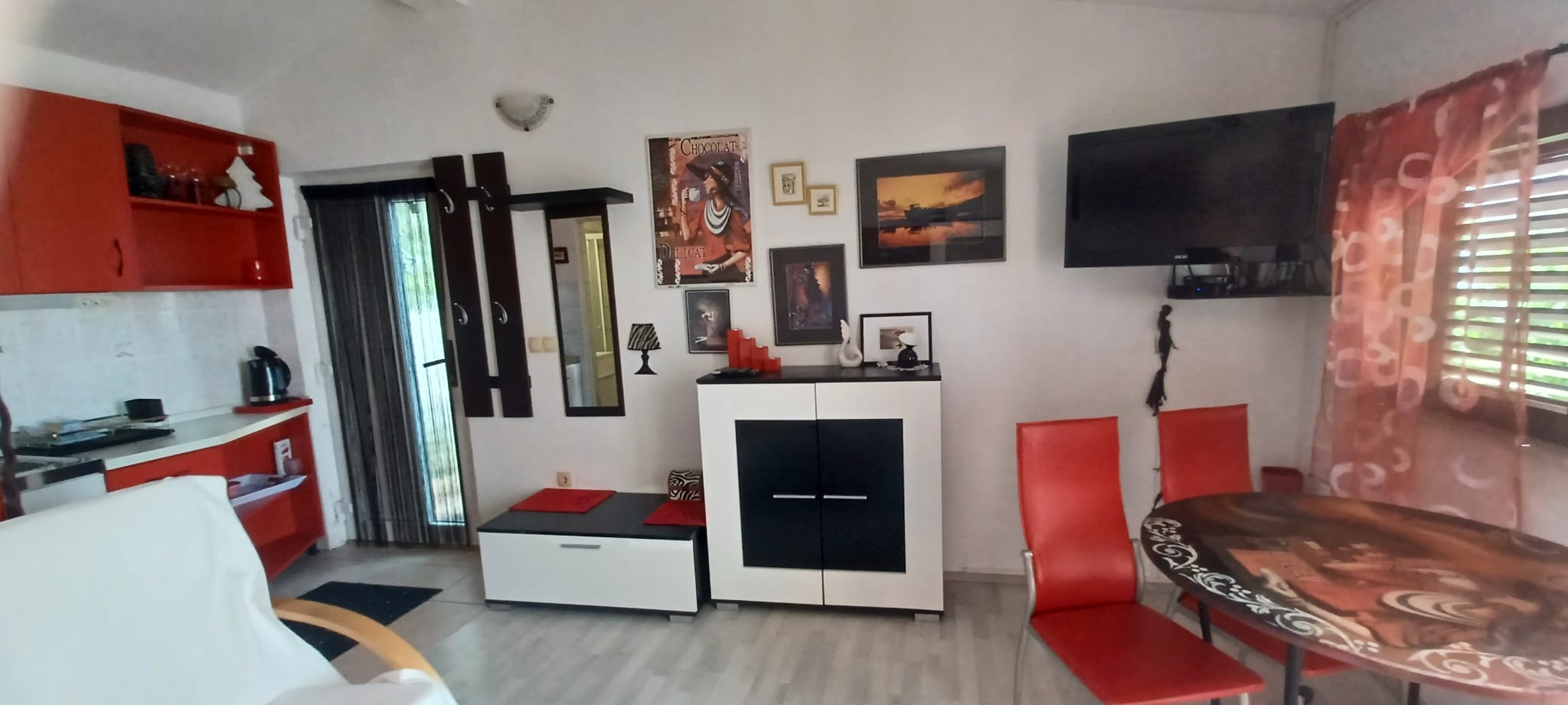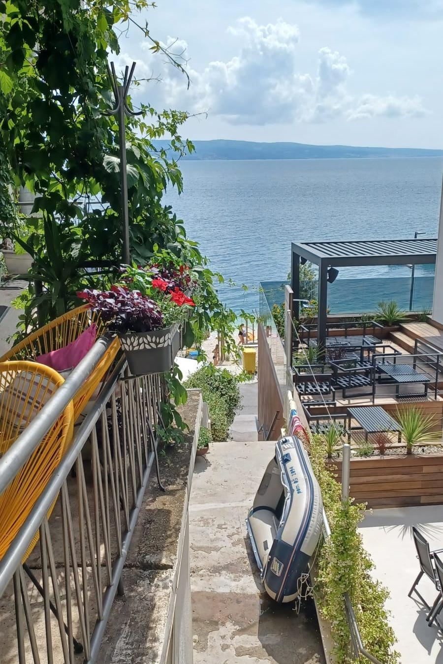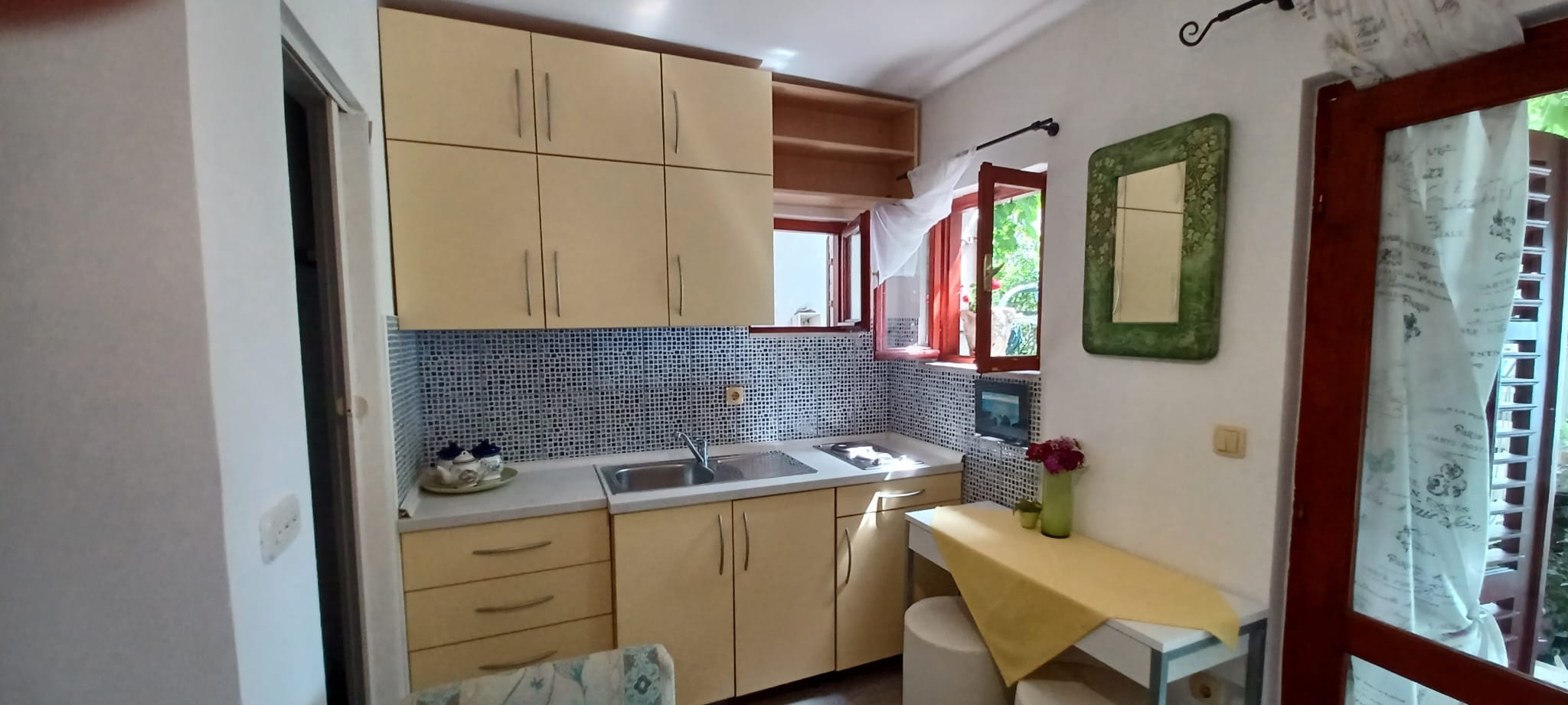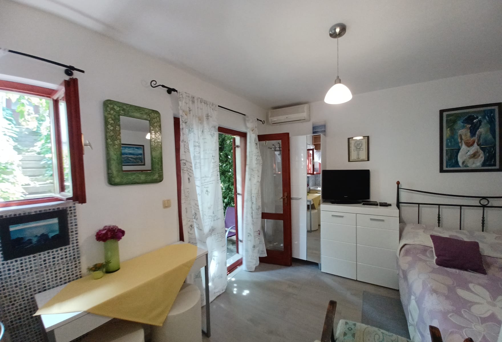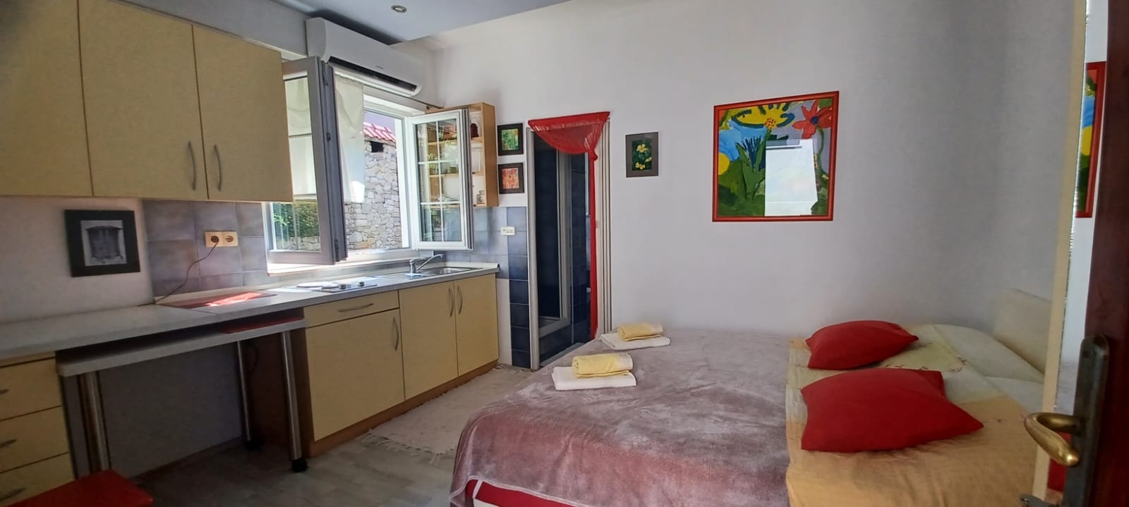 Studio flat can accommodate 2 guests. Beds are situated in 1 sleeping rooms, within 19m2. Guests can use a private balcony to enjoy the warm summer evenings. The studio offers the sea view. Food can be prepared using barbecue which is shared with other guests too. Other guests or hosts pass through the balcony of the booked accommodation unit.